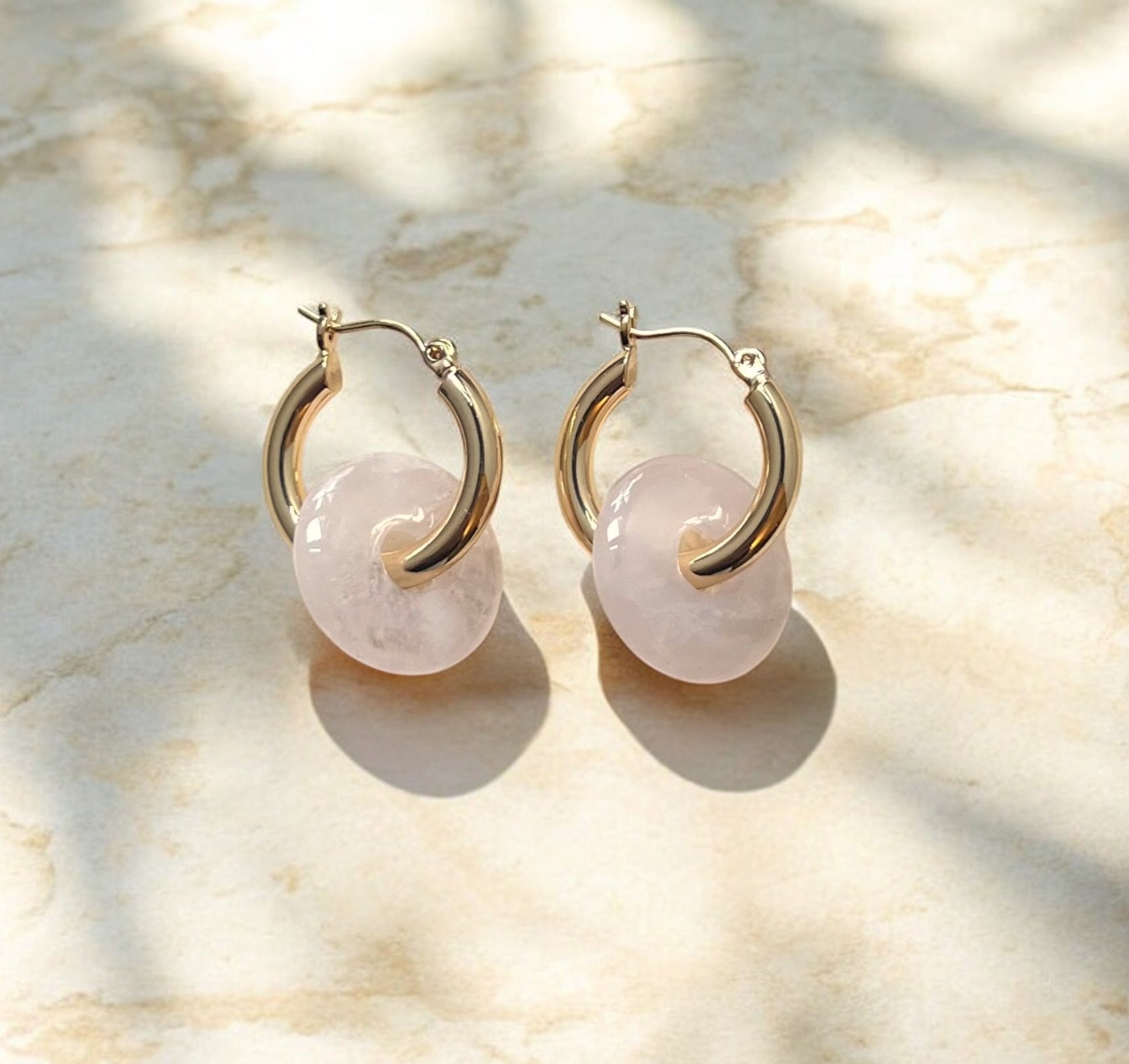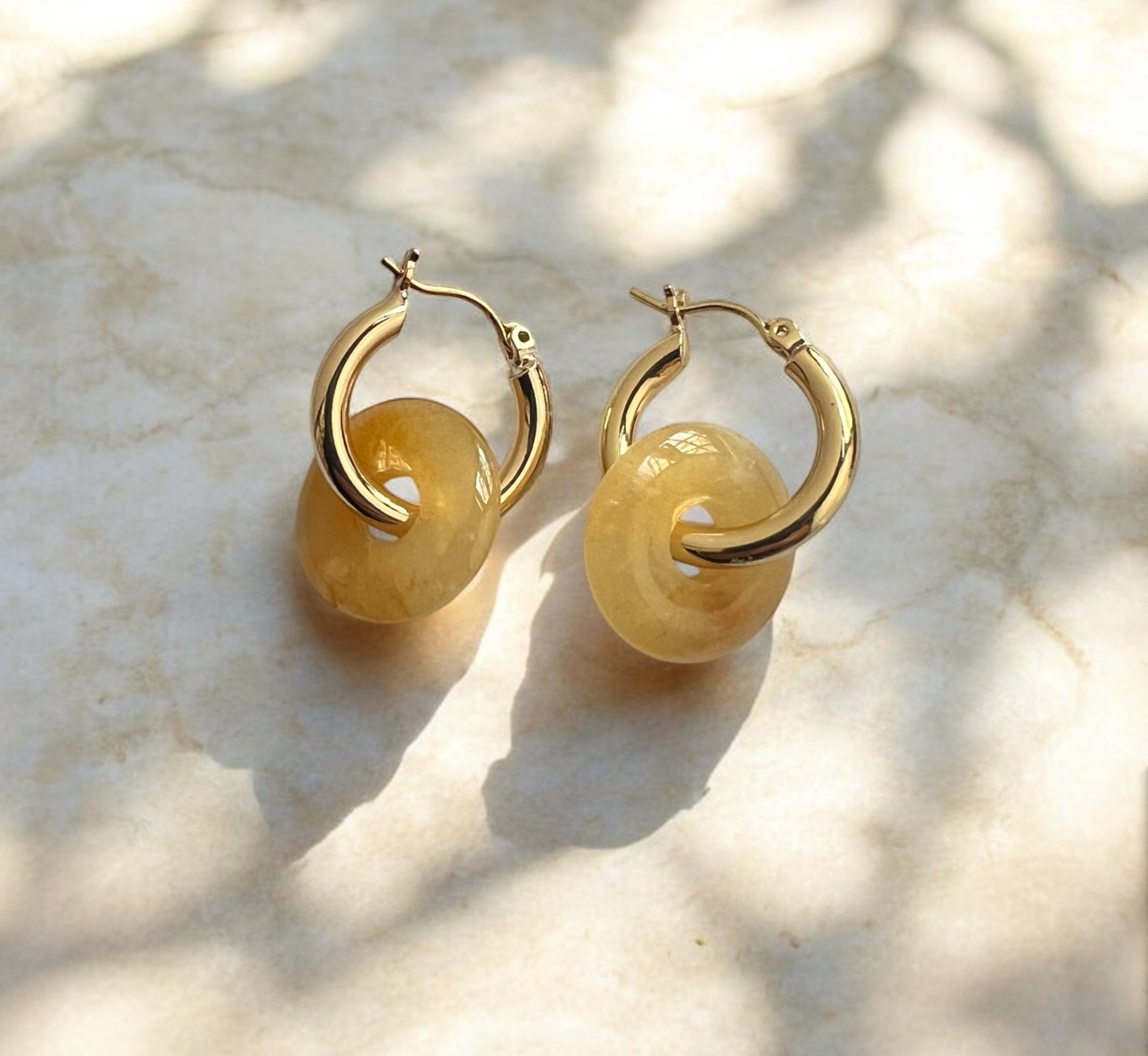 Enhance your style with our gorgeous natural gem stone hoop earrings. These earrings not only offer a beautiful chic minimal look, the white jade stone is said to have calming and purifying properties and is believed to promote mental clarity and peaceful relationships. These elegant and simple earrings are great for any occasion and easy to style. Additional stone options available.