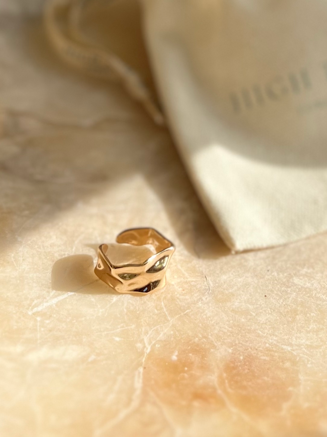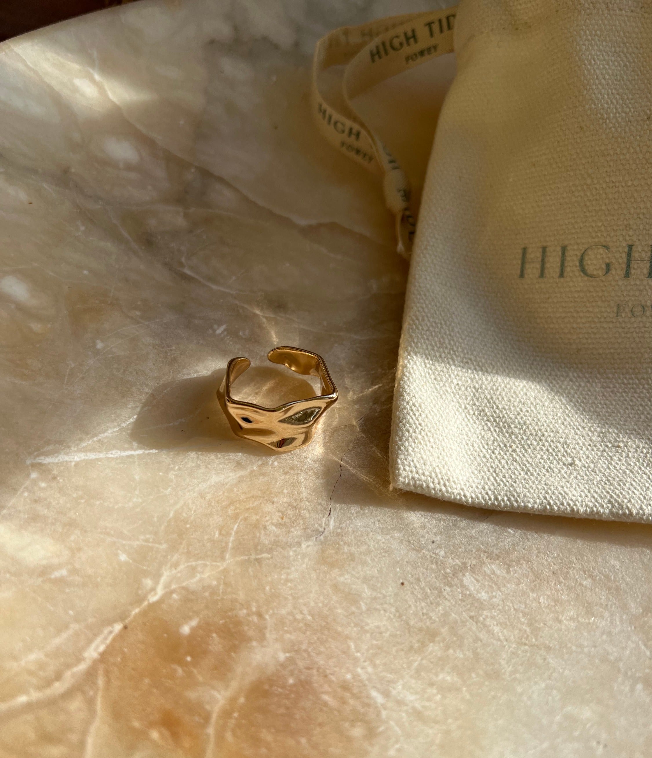 Inspired by the Ocean, High Tide offers this beautiful liquid gold style ring which is an adjustable design and effortlessly reflects the light with its watery wavy effect. This piece can be worn to remind the wearer of the Eb and Flow of life.