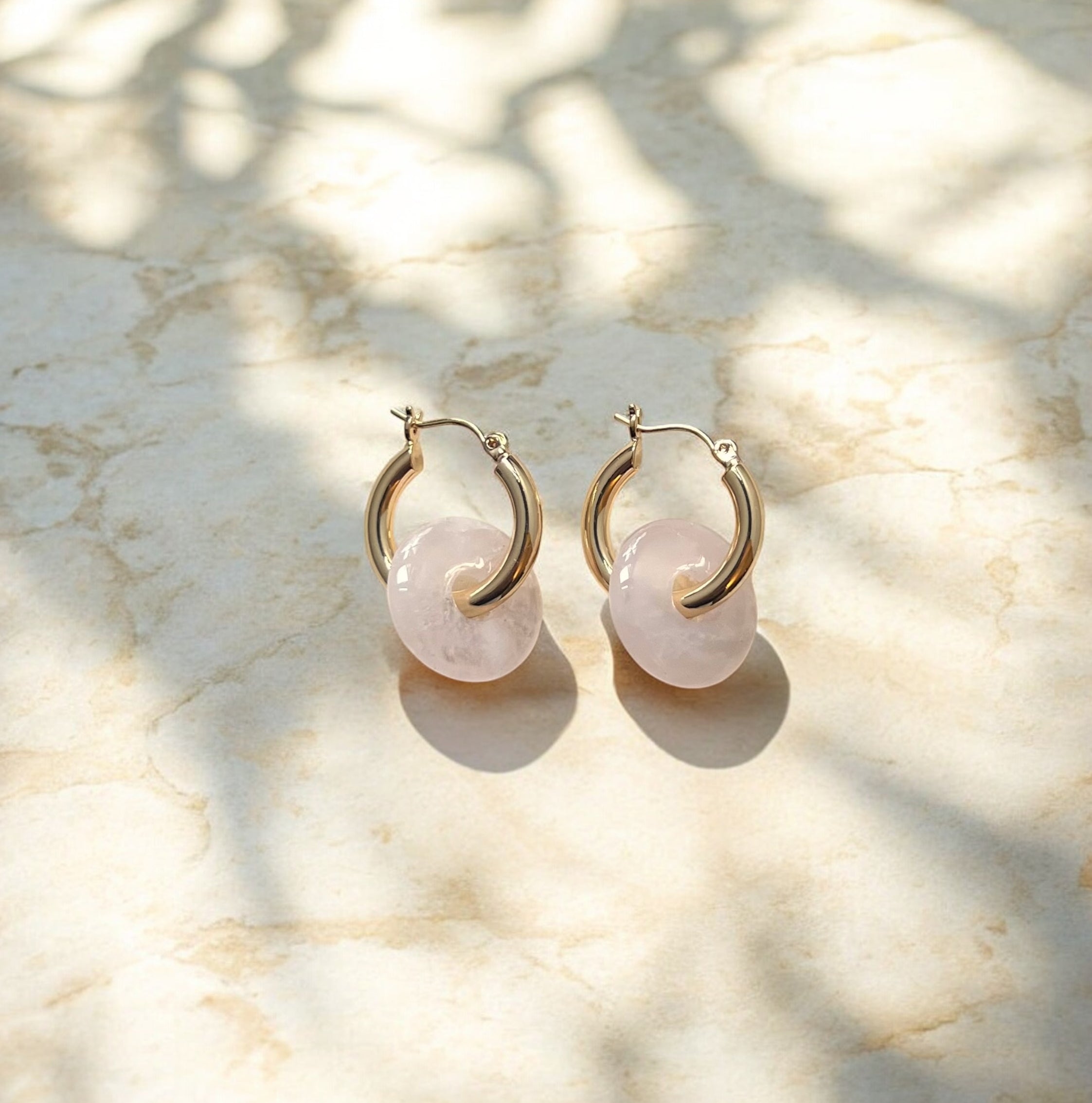 Rose Quartz Gold Plated Hoops