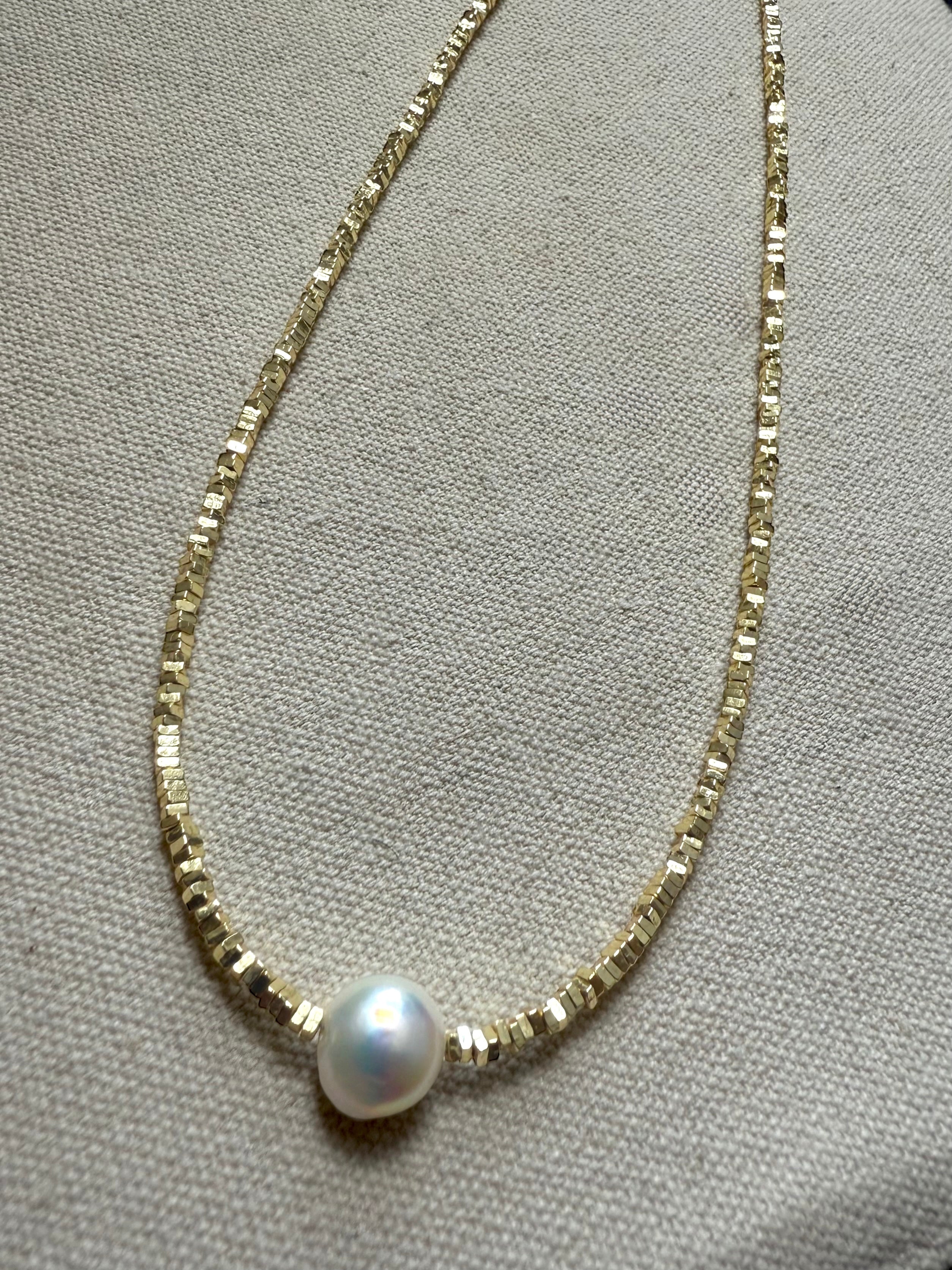 Gold plated Silver & Real Pearl Chain