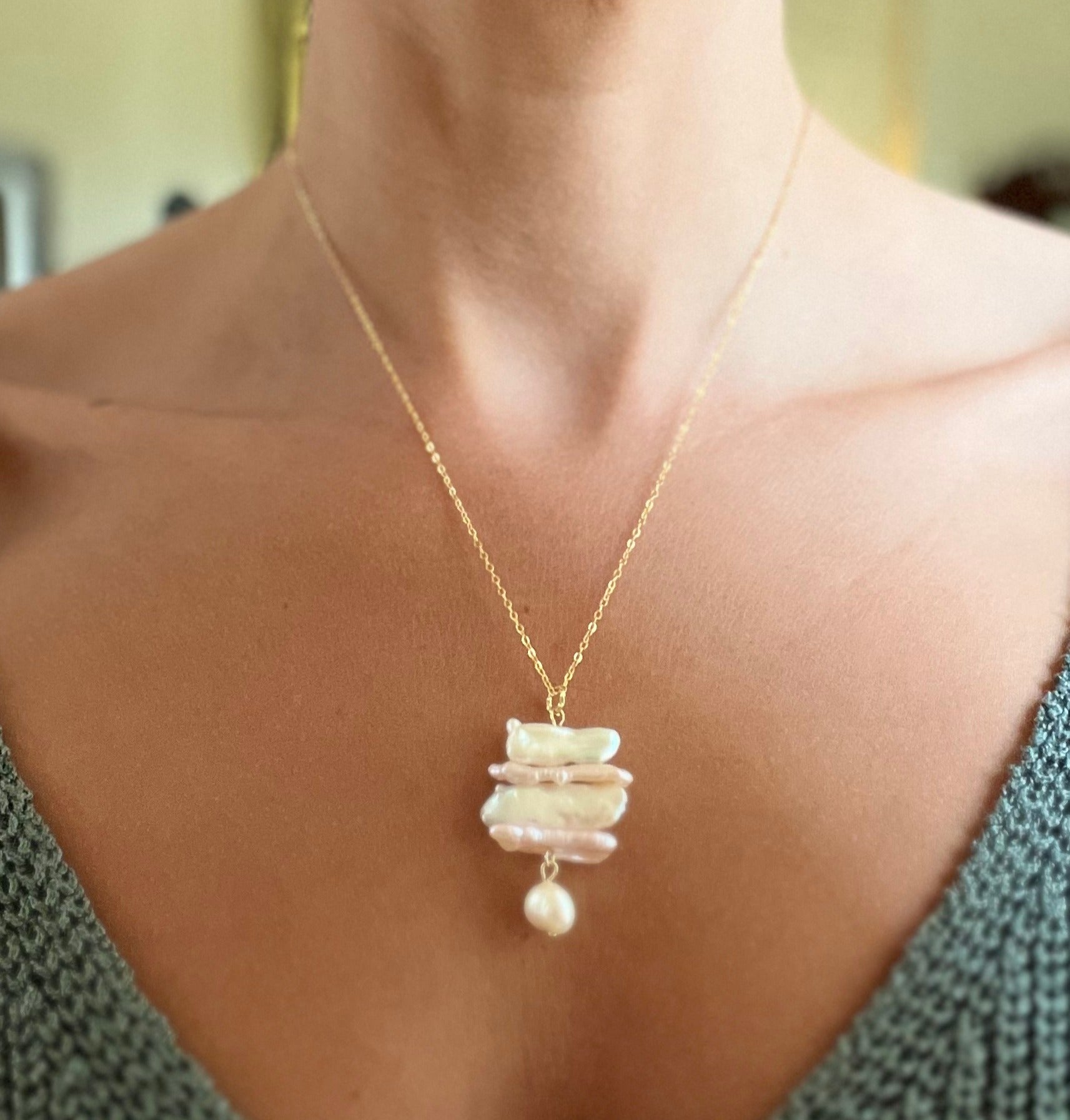 Nova Pearl and Chain Pendent Necklace