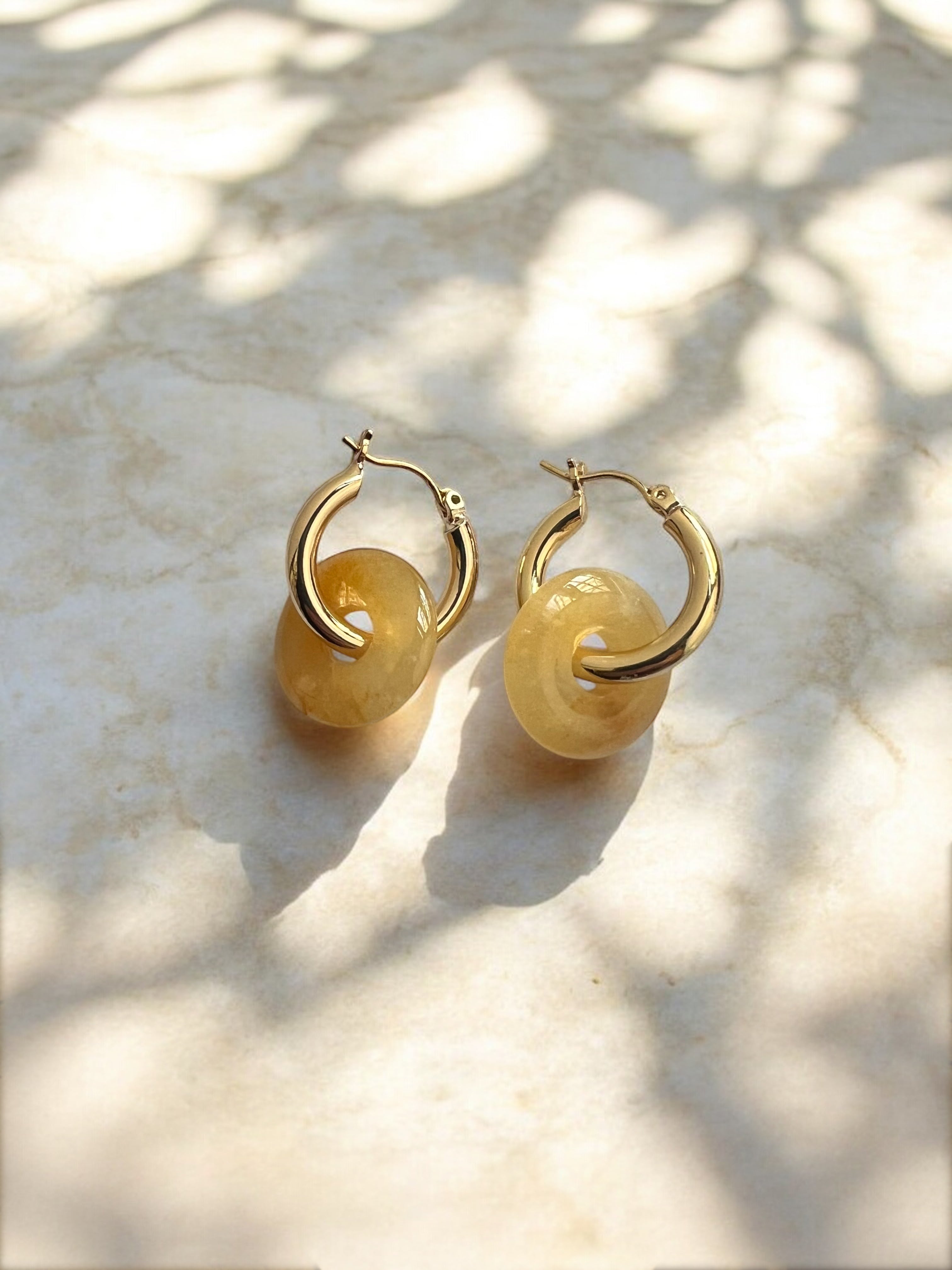 Yellow Jade Gold Plated Hoops